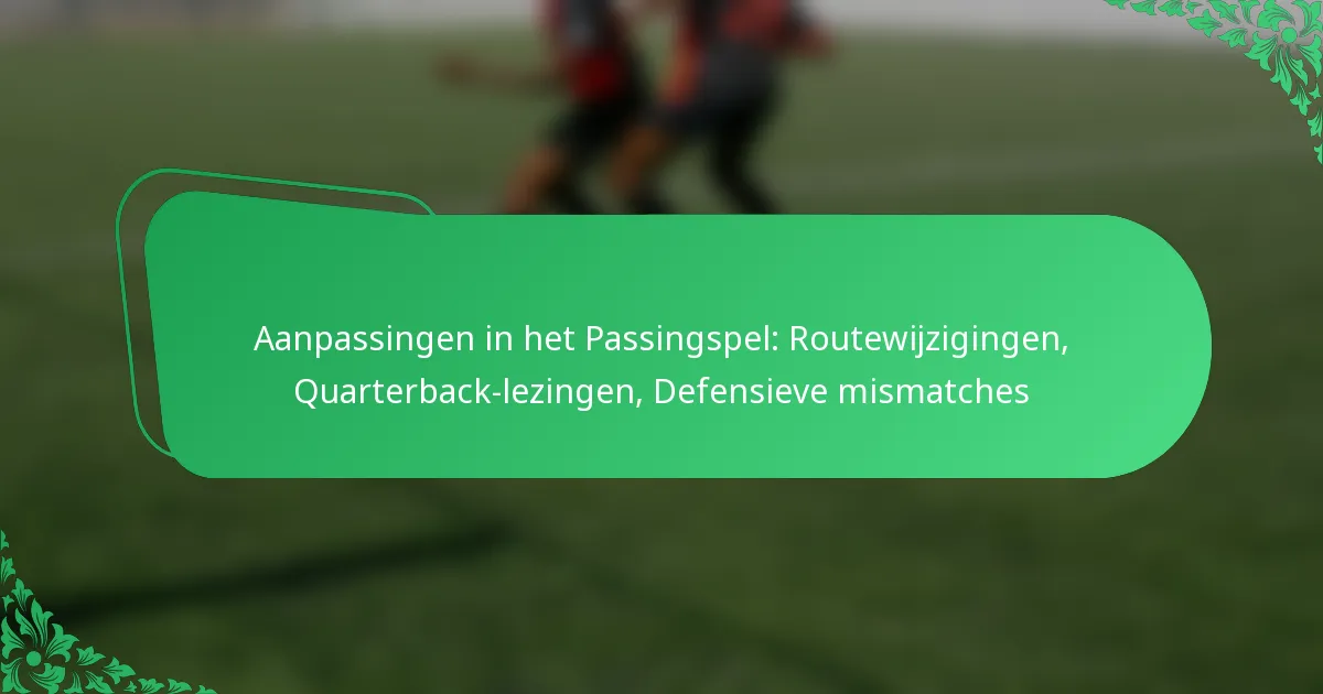 Aanpassingen in het passingspel omvatten strategische veranderingen in routes, de besluitvorming van de quarterback en de identificatie van defensieve mismatches. Deze componenten werken samen om de offensieve effectiviteit te verbeteren en zwaktes in de verdediging te benutten.