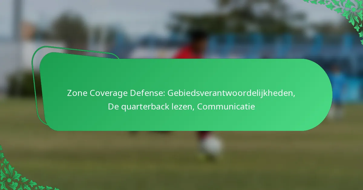 Zone coverage defense is een strategische benadering in het voetbal waarbij verdedigers zich richten op specifieke gebieden van het veld in plaats van individuele spelers te volgen. Deze methode verbetert het vermogen om passlijnen te dekken en kan de tegenstander, de quarterback, desoriënteren. Effectieve communicatie tussen teamgenoten en het vermogen om de signalen van de quarterback te lezen, zijn essentieel voor het succesvol uitvoeren van dit defensieve schema en het neutraliseren van aanvallende bedreigingen.